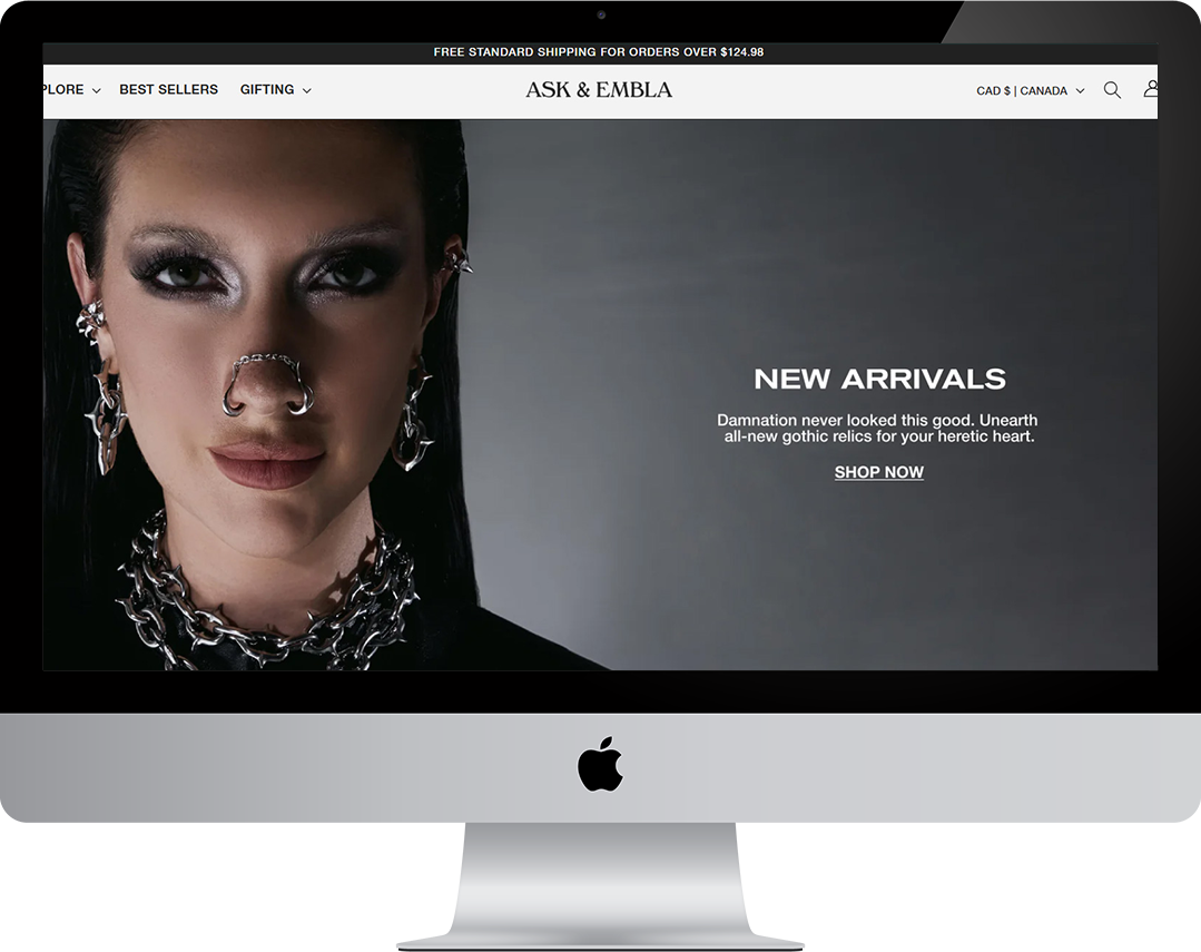 Ask & Embla is an alternative jewelry brand rooted in Norse mythology and designed for the misfits, mystics, and modern rebels of today. The founders needed a Shopify website that echoed their ethos — bold, symbolic, and unapologetically different.