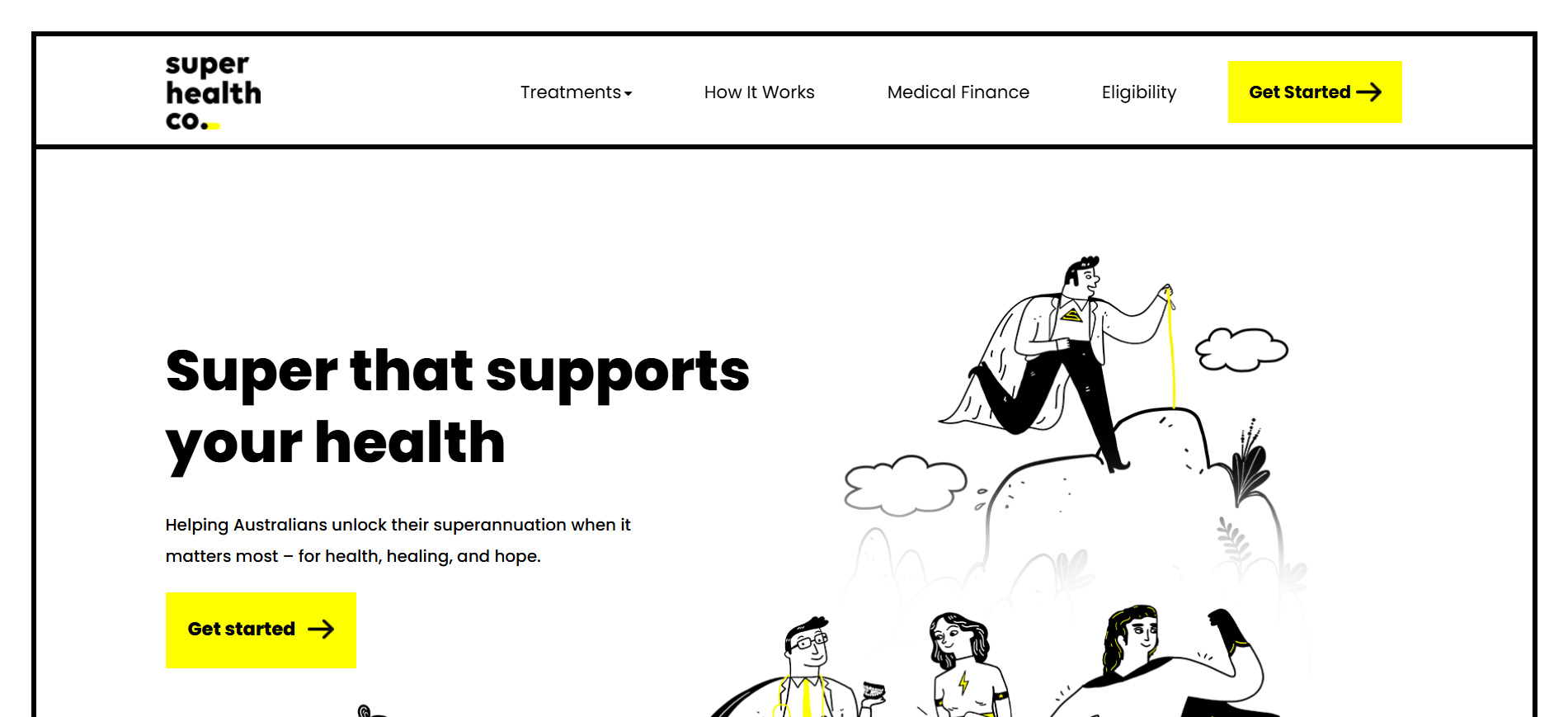 Super Health Co offers Australians access to early superannuation release for urgent medical treatments — from dental work and IVF to addiction rehab and mental health services. The client approached us to streamline the website’s communication, improve mobile usability, and modernize the platform’s visual identity to inspire trust while keeping the message simple and direct.
